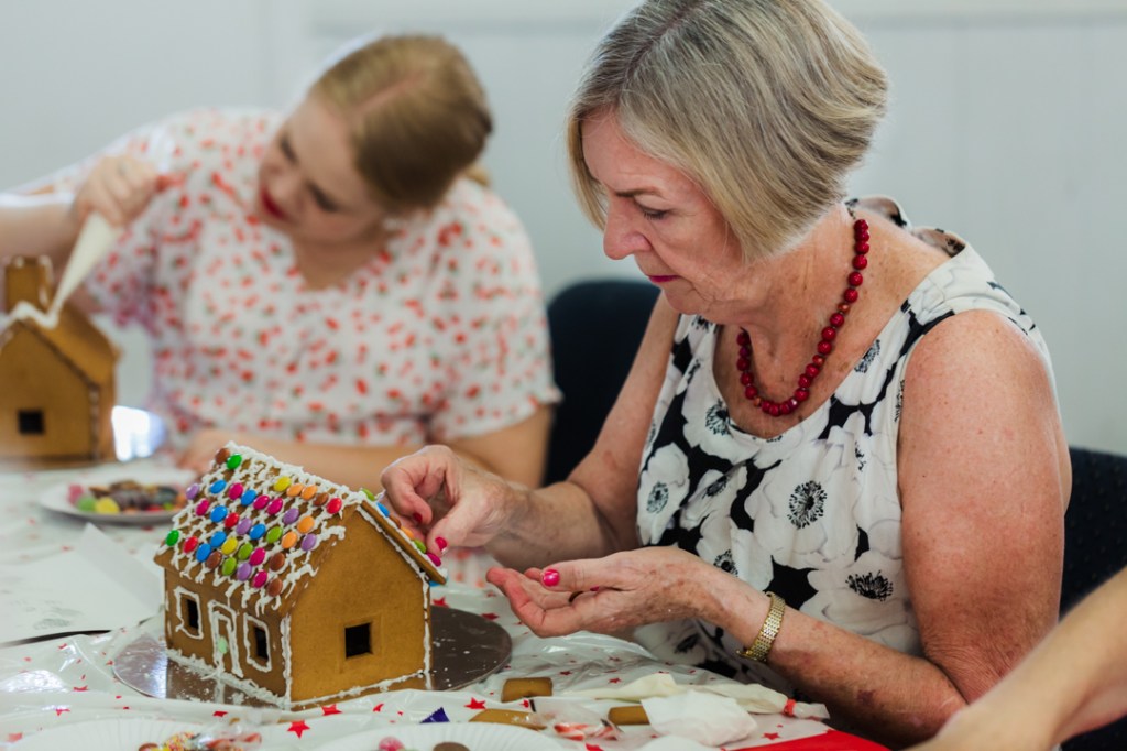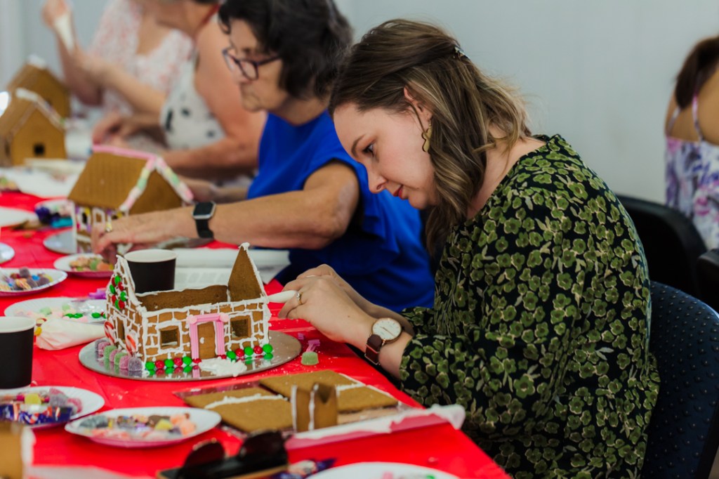 …nothing like a gingerbread house, and even better when you can make it yourself. Which is what these ladies did. They were decorators extraordinaire!!