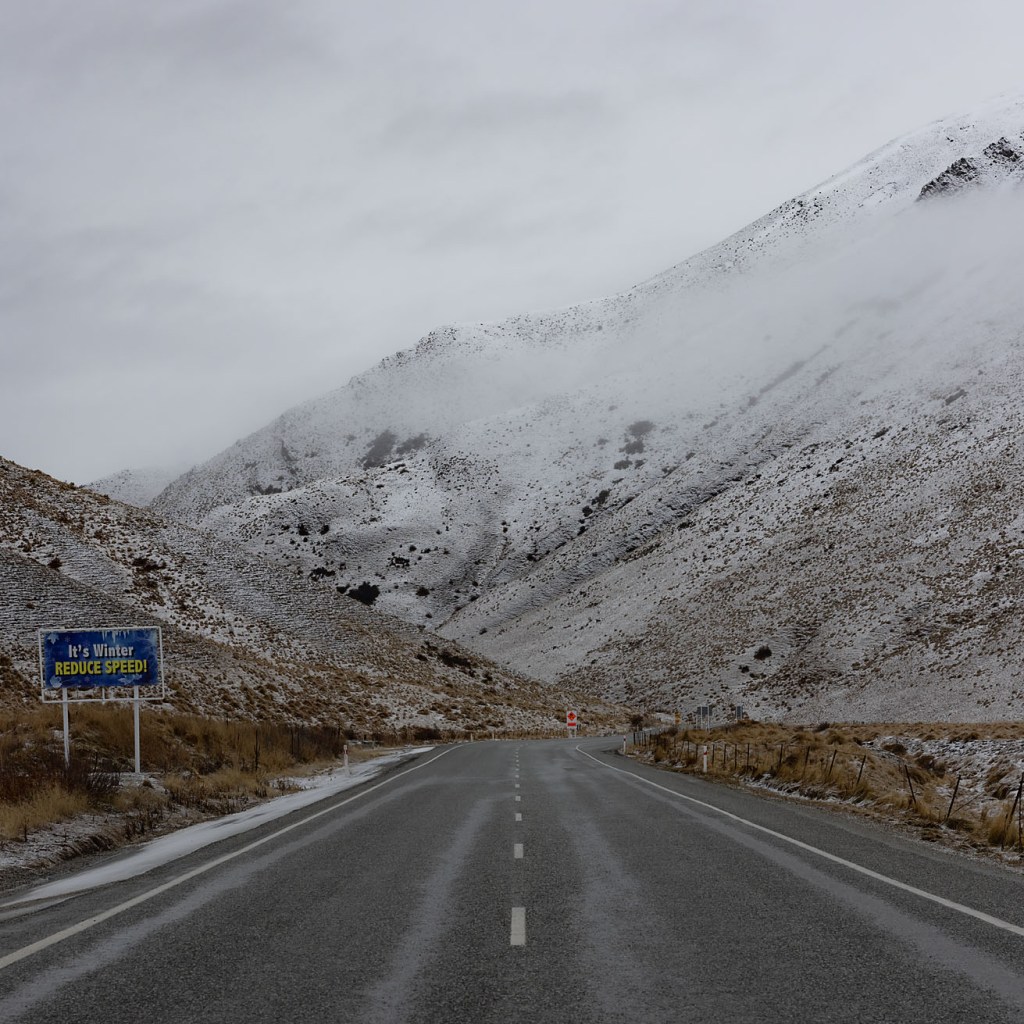 Lindis Pass is a stretch of road on the way to Queenstown….another one of my favourite roads and this time it was snowing.