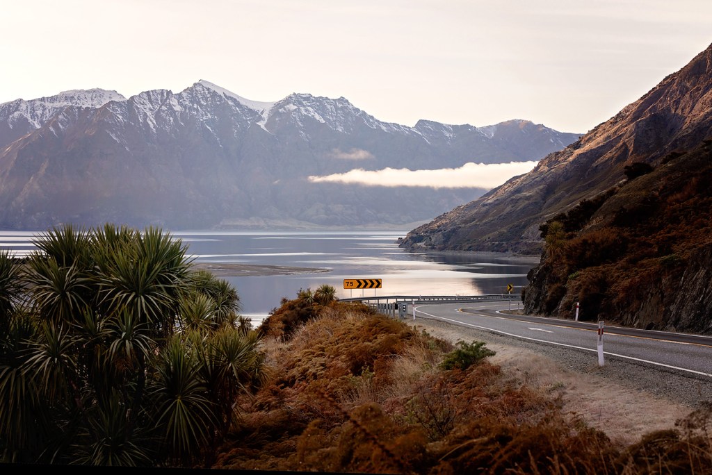 State Highway 6 is the road leading from Wanaka to the West Coast of New Zealand. Mountainous terrain with winding roads and views that make you want to stop at every turn. This particular stretch of road starts at Lake Hawea and heads north along the lakes edge. My ability to adequately describe in words what my eyes saw this morning is sorely wanting, so I’m just going to post a few scenes that I captured instead…