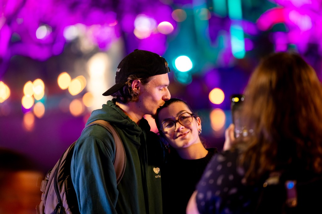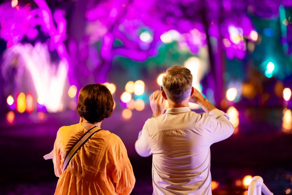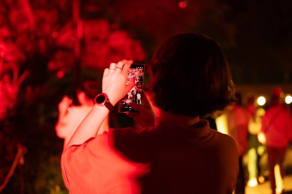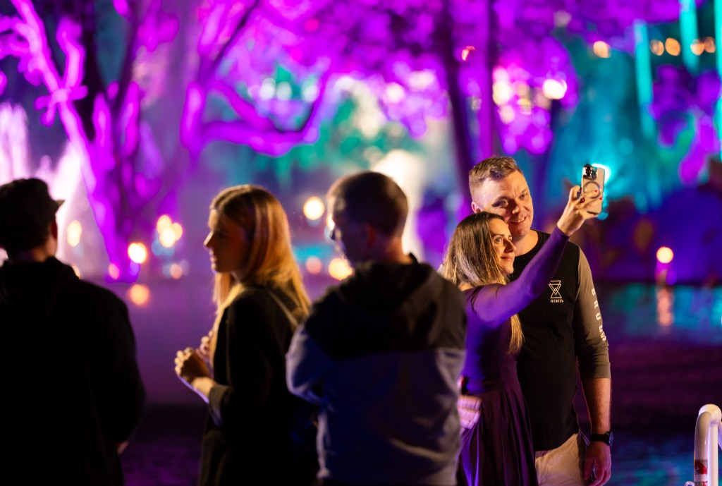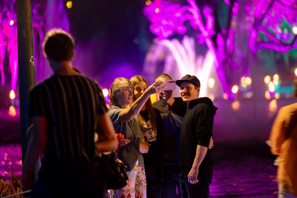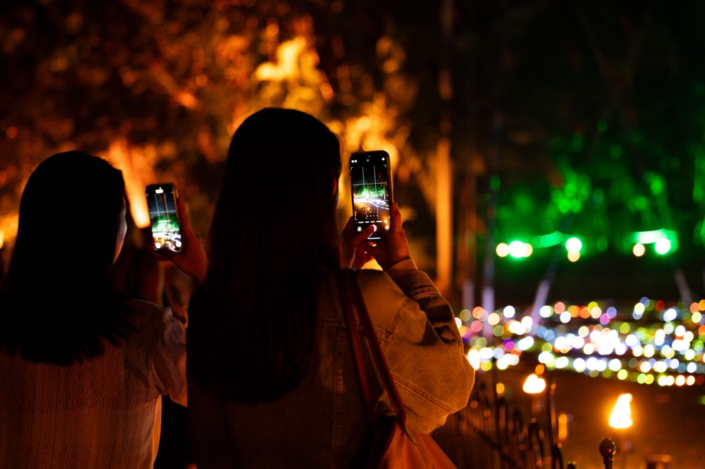 However, instead of just capturing the displays themselves, I started to focus more on the people and their reactions. Everyone had a phone in hand and so that gave me the idea of how to capture the sights and the excitement of the evenings meandering through the park. The first shot below however, was totally by accident where I must have accidently pressed the shutter – I did like the result though. It was a shot taken on the way to the Afterglow event, on the newest walk bridge across the Brisbane River